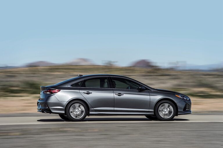 Jak w przypadku większości odświeżonych modeli, nie było znaczących zmian w profilu pojazdu. Nadal miał ten sam sportowy wygląd, mimo że była to sedan w układzie trzech skrzyń. Hyundai oferował Sonatę z 2018 roku z różnymi kołami, w zależności od wersji. Najniższe wersje, SE i Eco, miały 16-calowe felgi aluminiowe, podczas gdy wyższe wersje otrzymały koła 17- lub 18-calowe. Niezależnie od wersji, wszystkie modele były wyposażone w podgrzewane lusterka boczne, które również miały zintegrowane kierunkowskazy LED. Jednak jeden charakterystyczny element designu pozostał niezmieniony: chromowana linia, która zaczynała się przy reflektorach i biegła wzdłuż nadwozia aż do słupków C.