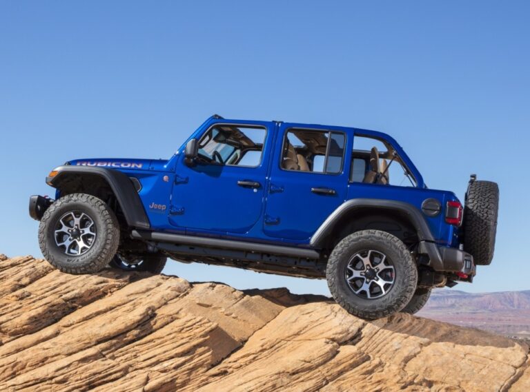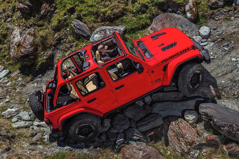 Modele Wrangler Rubicon oferują lepszą artykulację i całkowity ruch zawieszenia w porównaniu do poprzedniej generacji, dzięki elektronicznemu odłączeniu stabilizatora. Z standardową sześciobiegową manualną skrzynią biegów, Wrangler Rubicon ma imponujący współczynnik wspinaczki wynoszący 84.2:1, a 77.2:1 w modelach Rubicon z nową ośmiobiegową automatyczną skrzynią biegów – obie te opcje ułatwiają pokonywanie przeszkód na szlaku.