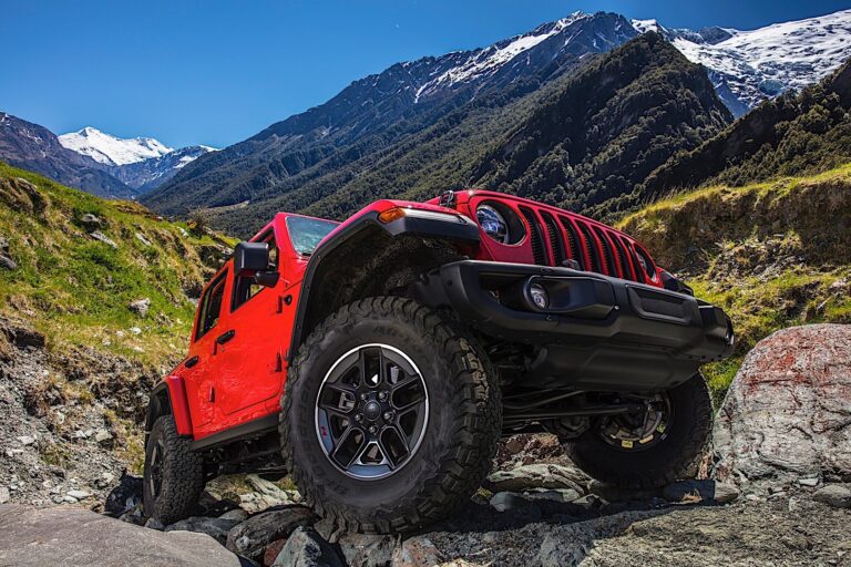 Dostępne agresywne 17-calowe koła terenowe; modele Rubicon mają standardowe opony o średnicy 33 cali