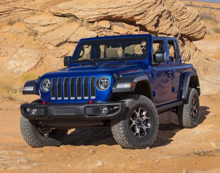 Już na pierwszy rzut oka łatwo było odróżnić nową generację, choć niektórzy mogli pomylić ją z jej poprzednikiem. Istniały jednak znaczące różnice między JK a JL. Model Rubicon z 2018 roku miał szerszy przedni grill z siedmioma szczelinami oraz reflektory, które zajmowały część jego przestrzeni. Dodatkowo, samochód wyposażono w dzienne światła w obrębie lamp. W tym samym czasie okrągowe kierunkowskazy, które znajdowały się poniżej, zostały usunięte. Jeep zastąpił je poziomymi lampami kierunkowskazów zamontowanymi na przedniej stronie błotników. Masywny zderzak z lampami przeciwmgłowymi umieszczonymi w zewnętrznych elementach był charakterystyczny dla modelu Wrangler Rubicon z 2018 roku, niezależnie od tego, czy miał on długi, czy krótki rozstaw osi.
