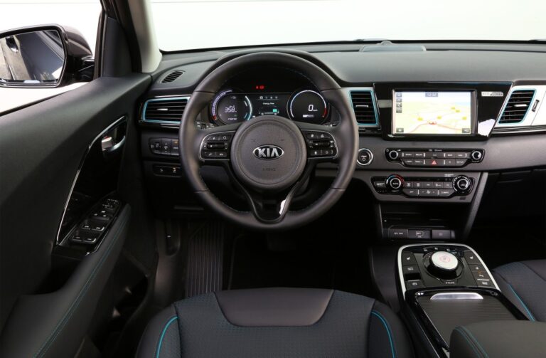 Design konsoli centralnej jest największą zmianą w e-Niro, w której w pełni elektryczny napęd eliminuje potrzebę tradycyjnej dźwigni zmiany biegów. Fizyczna skrzynia biegów została zastąpiona nowym dialem rotacyjnym zmiany biegów 'shift-by-wire’. Dial zmiany biegów umieszczony jest na osobnym, wysoce ergonomicznym panelu, który wystaje z podstawy centralnego podłokietnika. Oprócz diala rotacyjnego, nowy panel zawiera również przyciski do elektronicznego hamulca ręcznego, podgrzewanych i wentylowanych siedzeń, podgrzewanej kierownicy, selektora trybów jazdy, czujników parkowania oraz funkcji 'Auto Hold’ hamulca Niro. Nowy panel nie wymaga dużego tunelu skrzyni biegów, co pozwala projektantom Kia stworzyć większy obszar do przechowywania u podstawy konsoli centralnej.