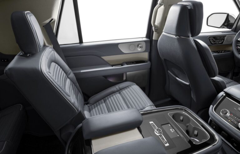 Głównym celem producenta było stworzenie spokojnego wnętrza, w którym klienci mogliby cieszyć się podróżami w maksymalnym komforcie. Tak jak w poprzednich generacjach, Lincoln Navigator z 2018 roku oferował standardowe siedzenia w trzech rzędach. Pasażerowie z przodu byli rozpieszczani standardowymi fotelami z dziesięcioma ustawieniami, w tym ogrzewaniem i chłodzeniem, podczas gdy dostępny był również opcjonalny system z 30 ustawieniami. Szeroki konsola centralna, która oddzielała kierowcę od pasażera z boku, pomieściła kilka uchwytów na kubki oraz przełącznik trybu jazdy. Szeroki podłokietnik skrywał głęboką przestrzeń do przechowywania. Przed kierownicą znajdował się konfigurowalny cyfrowy panel instrumentów, który ujawniał różne informacje, w tym mapę systemu nawigacji. Na szczycie centralnego panelu producent umieścił system infotainment z dziesięciocalowym ekranem dotykowym oraz do 20 głośników, oferując ekscytujące doświadczenie dźwiękowe. Drugi rząd był dostępny z ławką lub dwoma niezależnymi siedzeniami oddzielonymi konsolą centralną z dodatkowymi funkcjami. W tym samym czasie tylni rząd był wyposażony w elektryczną funkcję odchylania. Zapewniał wystarczającą ilość miejsca na nogi i głowę dla dorosłych.
