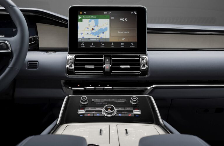 Łatwo jest pozostać połączonym w nowym Lincoln Navigator, z sześcioma portami USB, czterema gniazdami zasilania 12-woltowego i wtykiem 110-woltowym. Dostępna bezprzewodowa ładowarka do telefonów w centralnej konsoli w pierwszym rzędzie eliminuje splątane kable.