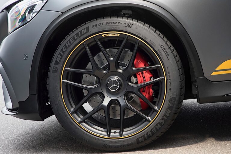 GLC 63 4MATIC+ standardowo wyposażony jest w 10-ramienne lekkie felgi 8.0 J x 19 (przód) i 9.0 J x 19 (tył) pomalowane w tytanowej szarości z wysokim połyskiem, z oponami o rozmiarze 235/55 R 19 (przód) i 255/50 R 19 (tył). Wymiary dla GLC 63 S 4MATIC+ to 265/45 R 20 (przód) i 295/40 R 20 (tył) na 5-ramiennych lekkich felgach pomalowanych w tytanowej szarości z wysokim połyskiem o wymiarach 9.5 J x 20 (przód) i 10.0 J x 20 (tył). Istnieją inne, opcjonalne kombinacje kół/opon, a także felgi kutego aluminium, aż do rozmiarów 265/40 R 21 na 9.5 J x 21 na osi przedniej oraz 295/35 R 21 na 10.0 J x 21 na osi tylnej.