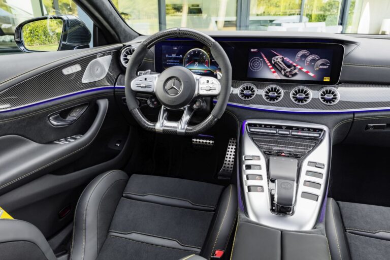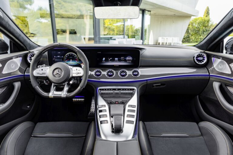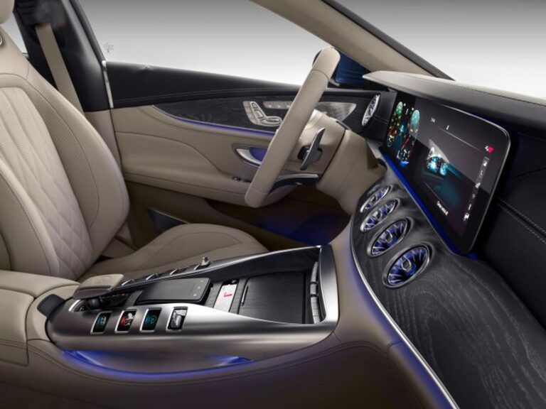 Wnętrze pierwszego czterodrzwiowego modelu AMG GT charakteryzuje się eleganckim chłodem oraz najnowszymi funkcjami: innowacyjne panele sterujące można intuicyjnie obsługiwać i konfigurować według potrzeb. Połączenie dużej personalizacji z technologią samochodów sportowych, które jeszcze bardziej skupia się na wymaganiach wymagających klientów, jest widoczne również w bogatej ofercie pakietów wyposażeniowych i indywidualnych opcji. Najnowsze coupé z Affalterbach spełnia również obietnicę marki Mercedes-AMG w zakresie wysokiej dynamiki jazdy i wyznacza nowe standardy w swoim segmencie na torze wyścigowym.