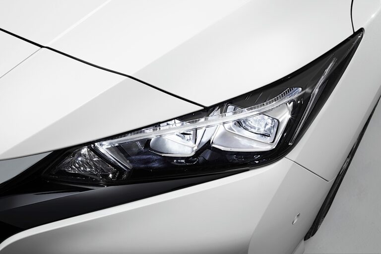 Reflektory nowego Nissana LEAF z podwójnymi soczewkami dla świateł mijania i drogowych to nowość w Nissanie. Więcej szczegółów mechanicznych oraz konfiguracja unoszącego się znaku wyrażają nowoczesny styl, przy jednoczesnej poprawie widoczności i bezpieczeństwa dzięki optymalizacji pokrycia oświetlenia przedniego, co równoważy design i funkcjonalność.