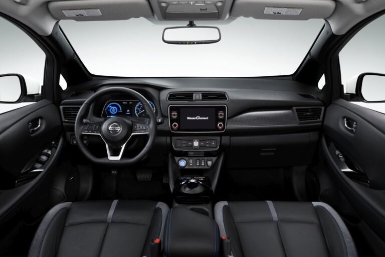 Kabina nowego Nissana LEAF oferuje przestronność i otwartość z wykorzystaniem języka projektowania marki „Gliding Wing” jako ramy. Zmodernizowany wyświetlacz informacji dla kierowcy ma prostą, lekką konfigurację bez zbędnych ozdób. Skupia się na widoczności, tworząc gustowny, stonowany wygląd i odczucie z doskonałą przestronnością i funkcjonalnością.