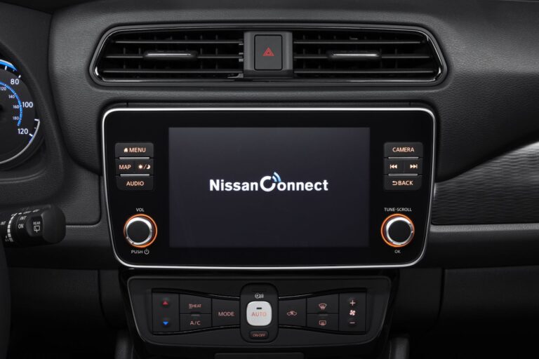 Używając NissanConnect, kluczowego elementu Inteligentnej Integracji Nissan, kierowca może wyszukiwać aktualne informacje, takie jak lokalizacja i godziny otwarcia stacji ładowania oraz dostępność stacji ładowania. Właściciele mogą również uzyskać dostęp do swojego smartfona, aby sprawdzić stan naładowania baterii.