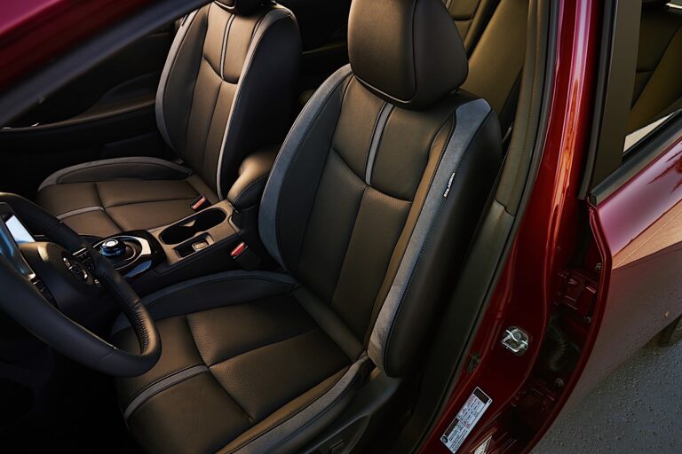 Całkowicie nowa aranżacja wnętrza Nissana LEAF ma gustowny, stonowany wygląd. Udało się to osiągnąć dzięki zastosowaniu wyższej jakości materiałów oraz lepszego dopasowania, co podnosi jakość „życia na pokładzie”, która ma być zgodna z wyrafinowanym charakterem jazdy.