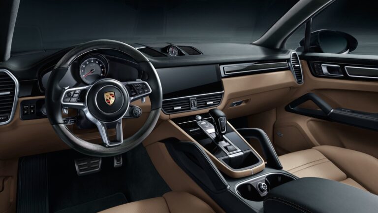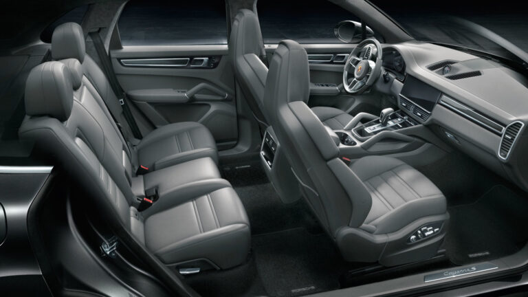 Wnętrze Cayenne wyposażono w nowy 12,3-calowy ekran dotykowy Full-HD, który pochodzi z systemu multimedialnego Porsche Communication Management. W zestawie wskaźników tylko obrotomierz pozostał analogowy, otoczony przez dwa 7-calowe wyświetlacze, potrzebne do wyświetlania innych istotnych danych dotyczących jazdy. Dzięki wydłużonemu rozstawowi osi pasażerowie z tyłu zyskali więcej miejsca na nogi, pomimo grubszych przednich siedzeń.