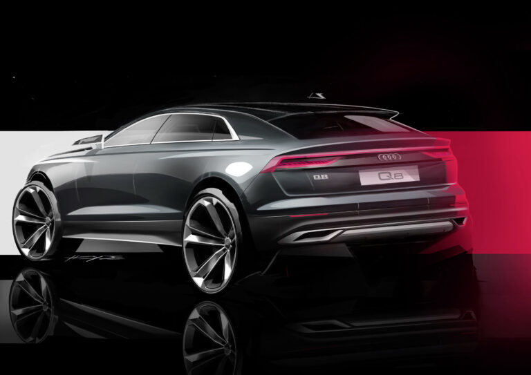 Audi Q8 reprezentuje postępową filozofię designu, którą Audi zaprezentowało po raz pierwszy w nowym A8. Silne kontury i sportowe powierzchnie przekazują poczucie mocy, wyrafinowania oraz szczególnej dynamiki napędu na wszystkie koła. Q8 interpretuje to na swój sposób, łącząc eleganckie czterodrzwiowe coupé z dużym SUV-em, z nawiązaniami do ikony marki Audi – oryginalnego quattro.