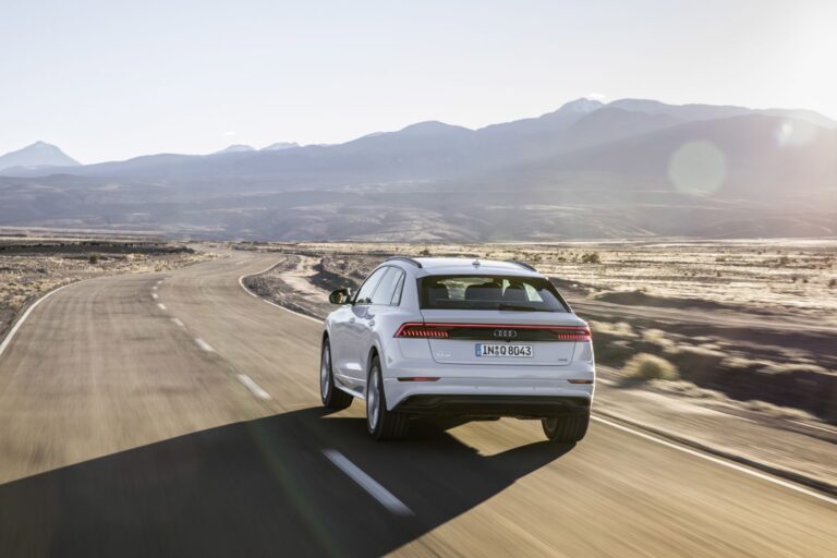 Układ napędowy Audi Q8 jest jednocześnie silny i wysoko efektywny, dzięki nowej technologii mild hybrid (MHEV). Integruje on baterię litowo-jonową i napięcie alternatora (BAS) w systemie zasilania 48 V. Ładowana bateria znajduje się pod podłogą bagażnika i przechowuje 10 Ah pojemności elektrycznej. Dynamiczny SUV może jechać w zakresie prędkości od 54 do 159 km/h z wyłączonym silnikiem, po czym BAS szybko i wygodnie uruchamia silnik.