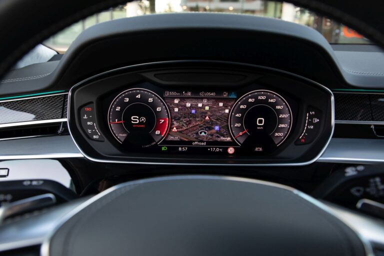 Nowe Audi S8 oferuje postępową technologię z nowymi usługami cyfrowymi i nowoczesną łącznością. Koncepcja obsługi MMI touch response nowego Audi S8 jest w pełni cyfrowa. Kierowca kontroluje niemal wszystkie funkcje za pomocą dwóch dużych wyświetlaczy. Można również korzystać z naturalnej obsługi głosowej, która oferuje niemal nieograniczoną swobodę w formułowaniu pytań i poleceń. Odpowiedzi pochodzą albo z informacji przechowywanych na pokładzie, albo w chmurze. Alexa, oparty na chmurze asystent głosowy Amazona, jest również dostępna jako opcja. Wszystkie wyświetlacze istotne dla jazdy pojawiają się w Audi wirtualnym kokpicie, który można przełączać między dwoma widokami. Podczas jazdy na prędkościomierzu i wskaźniku obrotów są wyświetlane jako duże wskaźniki w trybie jazdy, a mapa jest na czołowej pozycji w trybie infotainment. Oba widoki mają charakterystyki graficzne w kolorze czerwonym typowe dla S. W MMI można również wybrać specjalny układ S-performance dla Audi wirtualnego kokpitu, w którym centralnym punktem jest obrotomierz, wyświetlany jako kwadratowy wykres, a moc i moment obrotowy przedstawione są jako procenty. Opcjonalny wyświetlacz head-up może wyświetlać ważne informacje na przedniej szybie.