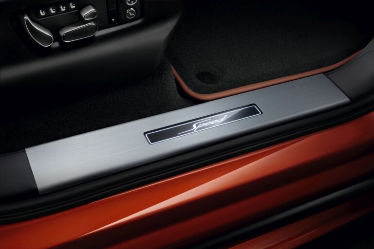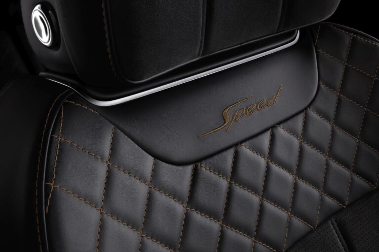 Podczas gdy klienci Bentaygi mają możliwość haftu skrzydeł Bentley na górze oparć siedzeń, w nowych modelach Speed zostały one zastąpione słowem 'Speed’, w wyszywaniu zarówno na ślepo, jak i kontrastowym. Metalowa tabliczka Speed zdobi panel kokpitu po stronie pasażera, podczas gdy podświetlana tablica progowa Speed wita pasażerów w prawdziwie luksusowym wnętrzu.
