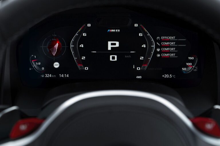 Wnętrze nowych sportowych aut o wysokich osiągach łączy projekt kokpitu specyficzny dla M z nowoczesnym luksusem. Standardowe wyposażenie BMW M8 Coupe, BMW M8 Convertible oraz modeli Competition obejmuje specyficzne dla modelu opcje tapicerki skórzanej, kluczyk BMW Display, wyświetlacz Head-Up BMW z treściami specyficznymi dla M, asystenta kierowcy, asystenta parkowania oraz BMW Live Cockpit Professional (z systemem nawigacji i inteligentnym asystentem BMW). Dodatkowe systemy asystujące dla kierowcy są dostępne jako opcje, aby zapewnić dodatkowy komfort i bezpieczeństwo.
