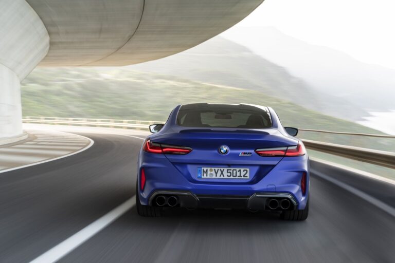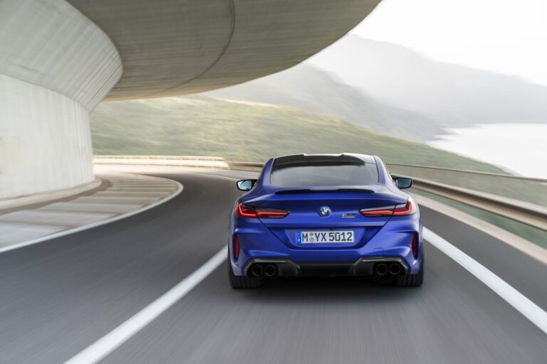 Wyjątkowa aura nowych modeli BMW M8 jest dodatkowo wzmocniona przez cechy specyficzne dla modelu, odpowiadające wymaganiom funkcjonalnym sportowych aut o wysokich osiągach. Duże wloty powietrza i charakterystyczny dla M grill przedni z podwójnymi poprzeczkami, bogato wyprofilowane nadkola przednie, żaluzje M w bocznych panelach, aerodynamika zoptymalizowanych lusterka zewnętrznego, tylni spojler oraz tylny zderzak z elementami dyfuzora w kontrastującym kolorze tworzą odpowiednią wizualną ekspozycję dynamicznego potencjału i ekskluzywnego statusu nowych modeli M. Oferowany jest również pakiet zewnętrzny M Carbon.