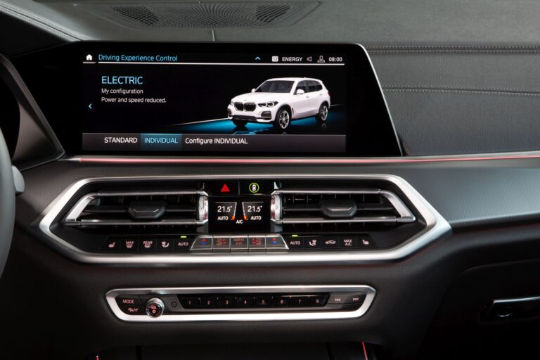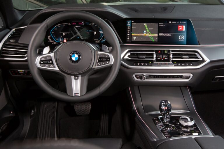 Wysokie siedzenie, skierowane na kierowcę kokpit oraz nowy projekt i układ elementów sterujących oferują osobie za kierownicą najlepszy możliwy widok na wydarzenia i umożliwiają mu utrzymanie pełnej kontroli nad prowadzeniem pojazdu. W pełni cyfrowy zestaw wskaźników i wyświetlacz sterujący są wizualnie połączone przez spójność designu i dzielą te same grafiki. Konsola centralna zawiera kontroler, nowo zaprojektowany selektor skrzyni biegów oraz wszystkie inne elementy sterujące związane z jazdą – czyli przełącznik Driving Experience Control, przycisk uruchamiania/zatrzymywania oraz przyciski do aktywacji ustawień zawieszenia pneumatycznego i trybów terenowych (jeśli są określone). Nowy panel sterowania dla ogrzewania i klimatyzacji jest również na pokładzie, a funkcje świetlne w nowym X5 są także obsługiwane za pomocą przycisków.