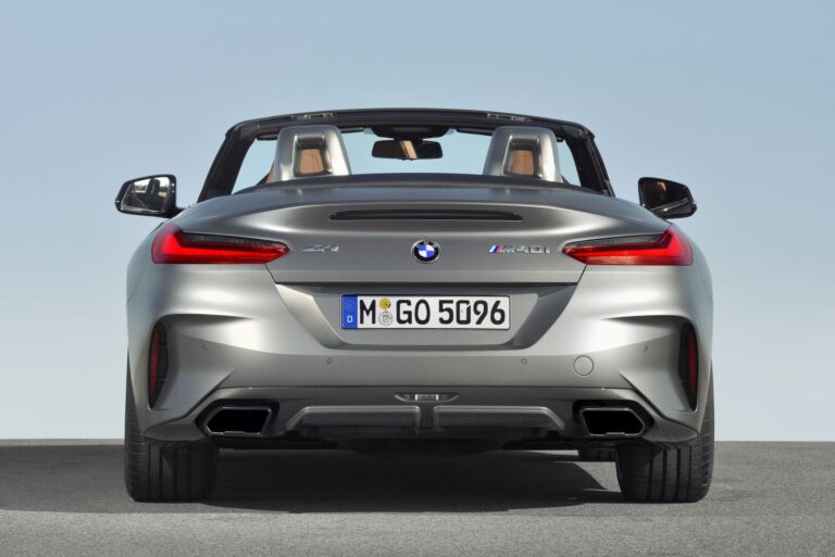 W harmonijnie zintegrowanym spojlerze pokrywy bagażnika oraz szczupłych, poziomo umieszczonych zespołach świetlnych w klasycznym L-kształcie, tył nowego BMW Z4 daje szeroki, przylegający do drogi wygląd. Potężny wygląd tylnego zderzaka jest dodatkowo wzmocniony przez boczne otoczenia i końcówki układu wydechowego flankujące efektowny dyfuzor.