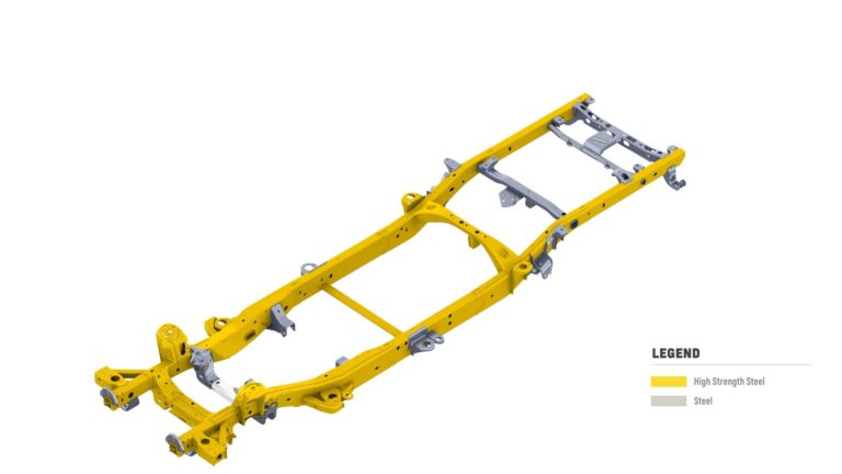 Całkowicie zamknięta stalowa rama jest również o 88 funtów (40 kg) lżejsza niż jej poprzednik, oferując jednocześnie 10 procent większą sztywność skrętną. Osiemdziesiąt procent ramy wykonane jest ze stali o wysokiej wytrzymałości o grubości od 2 do 5 milimetrów, a każdy milimetr jest zoptymalizowany pod kątem wydajności przy użyciu różnych procesów, w tym hydraformowania, formowania na zimno, konwencjonalnego tłoczenia i zwijania wycinanych blach. W rezultacie sekcje ramy, wskaźniki, klasy, procesy i materiały różnią się strategicznie, aby maksymalizować wytrzymałość, trwałość i sztywność bez dodawania zbędnej masy.
