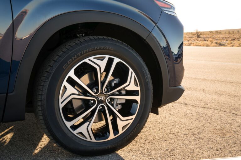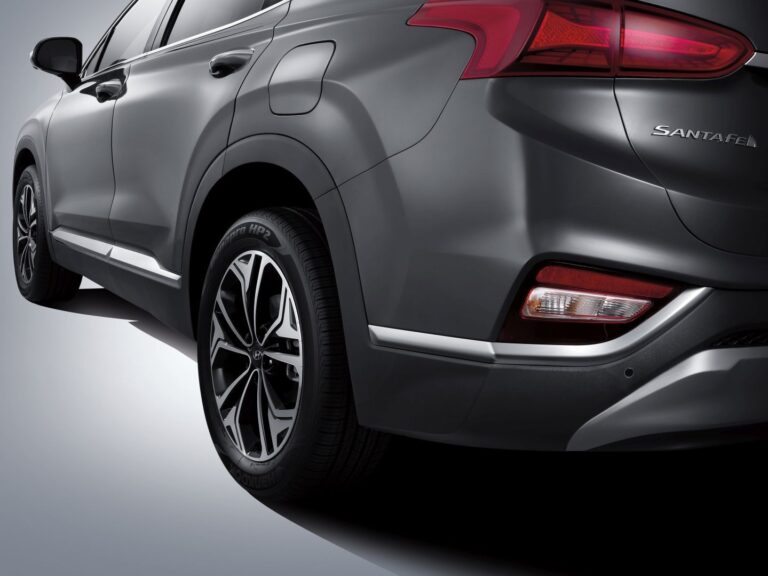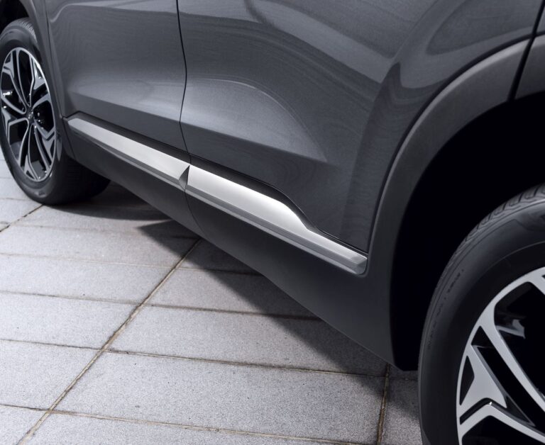 Profil Hyundai Santa Fe prezentuje dynamiczną linię charakterystyczną, która sięga od reflektorów po światła tylne, a także większe okno dzienne (DLO) z satynowym wykończeniem, które zapewnia elegancki wygląd i lepszą widoczność. Wyróżniające się diamentowo cięte, 19-calowe koła komunikują siłę, podobnie jak tylna część samochodu, teraz z muskularną, wysoką i napiętą formą.