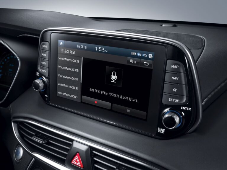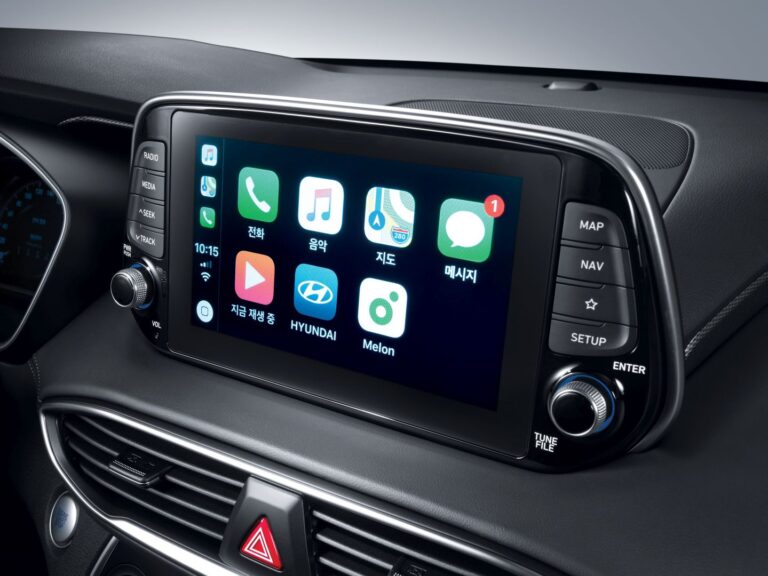 Hyundai Santa Fe 2019 jest wypełniony technologią, w tym najnowszym systemem nawigacyjnym Hyundai AVN 5.0 z Android Auto™ i Apple CarPlay™ oferowanym w wyższych wersjach wyposażenia. Wersja podstawowa ma standardowy 7-calowy interfejs użytkownika, również wyposażony w Android Auto i Apple CarPlay. Aby zlikwidować potrzebę używania kabla do ładowania, dostępna jest podkładka do ładowania bezprzewodowego Qi dla kompatybilnych urządzeń Android, a także iPhone 8 i iPhone X.
