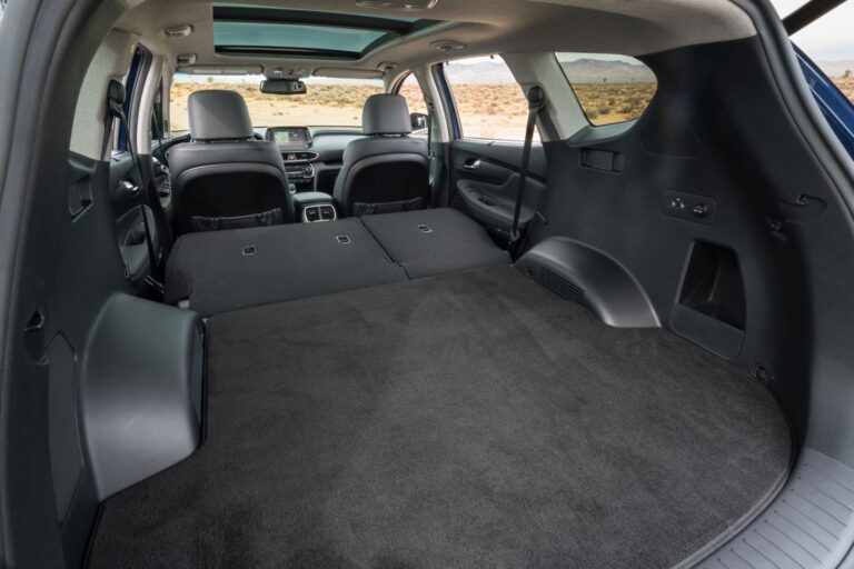 Przestrzeń wnętrza kabiny została rozszerzona w Santa Fe 2019. Wewnątrz jest teraz więcej miejsca na bagaż za siedzeniami drugiego rzędu, gdy są one złożone. Oprócz większej przestrzeni bagażowej, długość miejsca na nogi w drugim rzędzie również została wydłużona, aby osiągnąć najlepszą klasę. Odległość punktu H między pierwszym a drugim rzędem również została zwiększona, a podłoga została obniżona dla jeszcze większego komfortu w drugim rzędzie. Inżynierowie również wprowadzili siedzenia w drugim rzędzie, które składają się jednym dotknięciem.