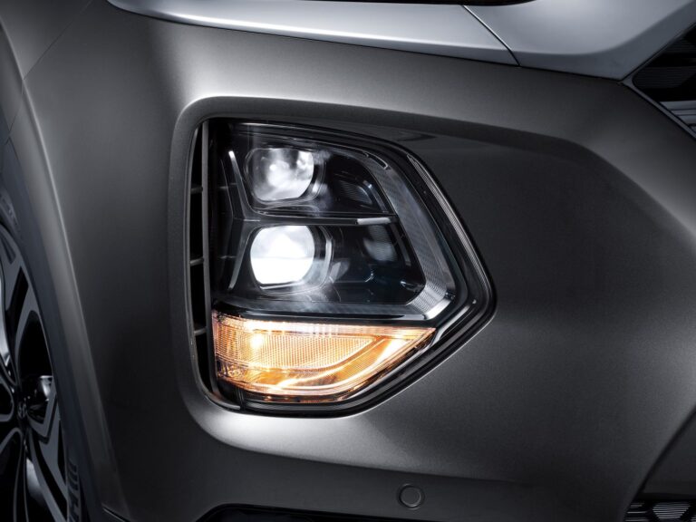 Twarz nowego Santa Fe podkreśla charakterystyczny dla Hyundaia grill Cascading oraz projekt Composite Light, który obejmuje LED-owe światła dzienne umieszczone na górze LED-owych reflektorów. Zewnętrzny design charakteryzuje się potężnym, szerokim staniem i atletyczną sylwetką, która robi wrażenie nawet z odległości 100 stóp. To odważny wygląd wzmocniony wyrafinowanymi liniami, które podkreślają status pojazdu w ofercie SUV-ów Hyundaia.