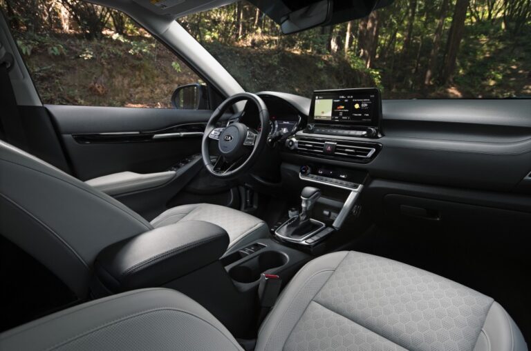 Wnętrze Seltosa zostało zaprojektowane z wysokiej jakości, futurystycznych materiałów. Skierowane do młodszych, obeznanych z technologią klientów, kabina charakteryzuje się szerokimi, płynnymi kształtami oraz wysoce technicznymi detalami. Wyposażona w różnorodne technologie, które maksymalizują wygodę, łączność i prostotę obsługi, odważny design kabiny zawiera system infotainment z ekranem dotykowym o przekątnej 10,25 cala oraz podświetlenie Sound Mood Lighting.