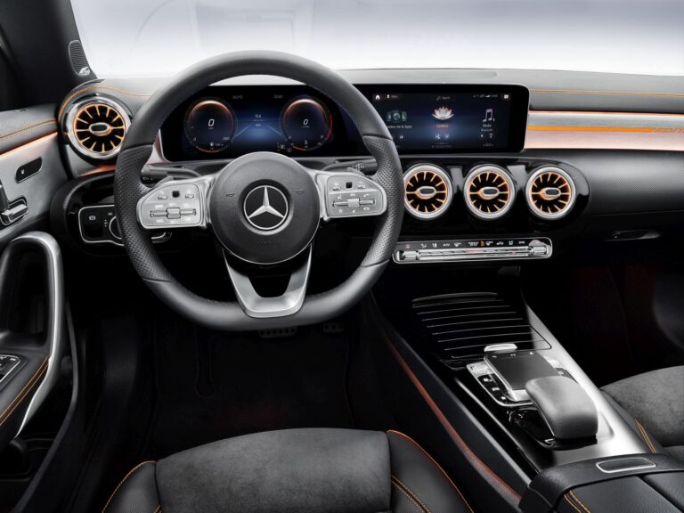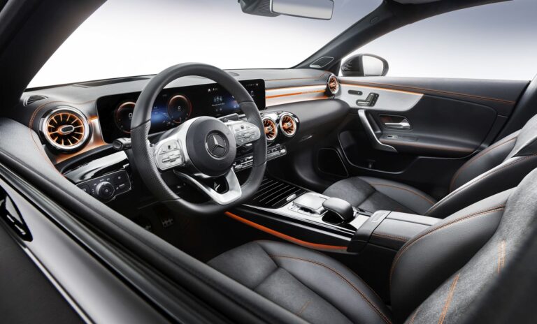 Wnętrze Mercedesa pozostało takie samo jak w Klasie A, z szerokim wyświetlaczem, który pełnił rolę zestawu wskaźników oraz ekranu systemu infotainment. Wentylatory w kształcie turbin, podświetlane, to niektóre z detali, które pomogły niemieckiemu producentowi przekształcić ten pojazd w bestsellera. Klienci mogli zamówić samochód z regularnymi lub sportowymi fotelami zintegrowanymi z zagłówkami. Z tyłu było niewiele miejsca na głowę dla wysokich dorosłych, ale wystarczająco dla dzieci.