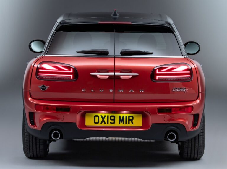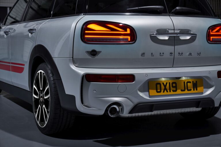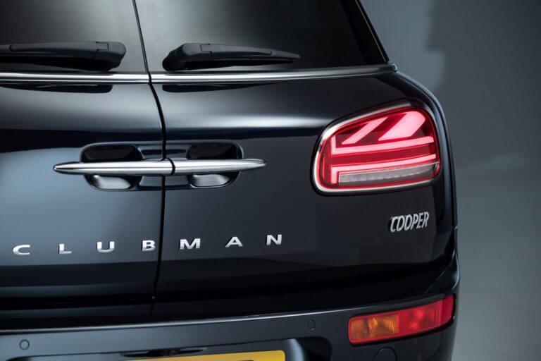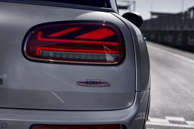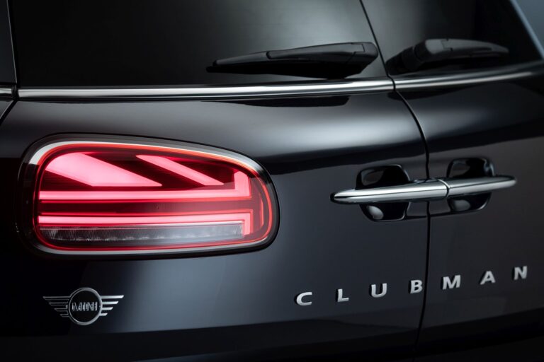 Nowy MINI Clubman jest teraz standardowo wyposażony w reflektory LED z tyłu. Jednostki świetlne z chromowanym obramowaniem są teraz szczególnie zintegrowane w błotnikach dzielonych drzwi. W połączeniu z opcjonalnymi reflektorami LED lub adaptacyjnymi reflektorami LED, poziome reflektory tylnie mają nowy design, który podkreśla brytyjskie pochodzenie marki: graficzna struktura ich źródeł światła odzwierciedla zniekształcony wzór Union Jack. Dzięki wyrazistym liniom motyw flagi zapewnia charakterystyczną formę identyfikacji – zarówno w ciągu dnia, jak i nocą. Światło hamowania jest teraz również generowane z tej nowo zaprojektowanej jednostki świetlnej.
