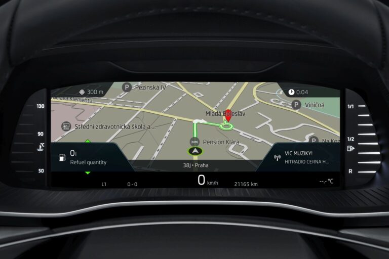 Nowy wyświetlacz head-up w Škodzie Octavia to pierwszy taki przypadek w Škodzie. Jest dostępny jako opcjonalny dodatek od poziomu wyposażenia Style w górę. Ta innowacyjna funkcja zwiększa zarówno bezpieczeństwo, jak i komfort, projkując najważniejsze informacje, takie jak prędkość, nawigacja, wykryte znaki drogowe i aktywowane systemy asystujące bezpośrednio na szybie, w wyraźnym zasięgu kierowcy. Dzięki temu mogą oni odczytać takie informacje, nie odrywając wzroku od drogi. Wielofunkcyjny wyświetlacz Maxi DOT wchodzi w standardzie w każdej Octavii, przedstawiając informacje na 4.2-calowym ekranie w do 16 kolorach.