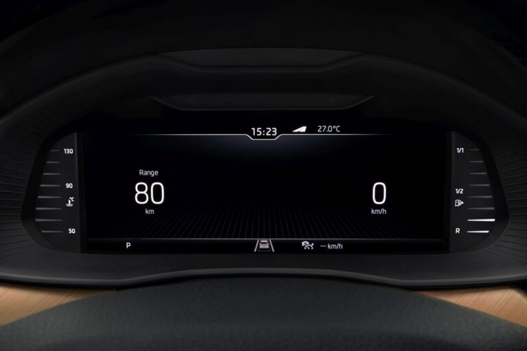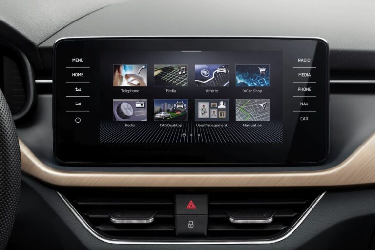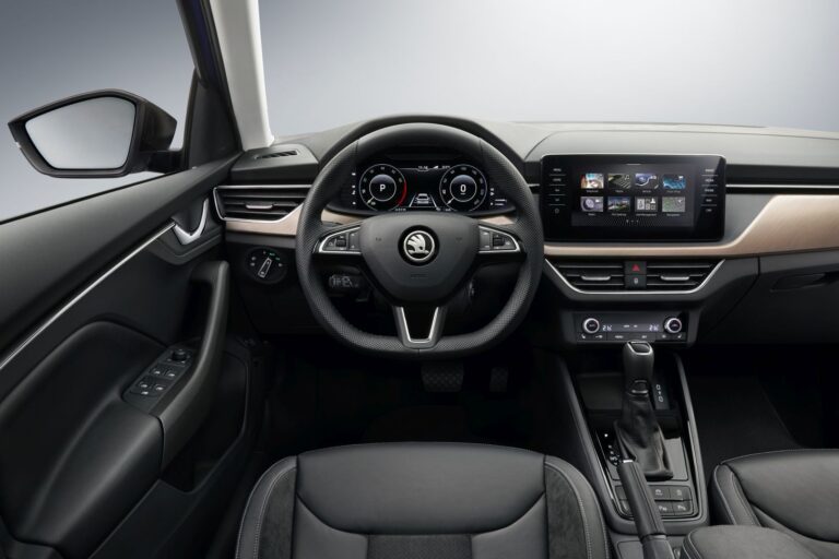 Emocjonalny język projektowania koncepcji VISION RS został po raz pierwszy przeniesiony do wnętrza produkcyjnego samochodu Škody – Škody Scali. Dzięki opcjonalnemu Virtual Cockpit z wyświetlaczem o przekątnej 10,25 cala – największym w segmencie – kierowca ma ciągły dostęp do innowacji Scali. Emocjonalny język projektowania na zewnątrz jest płynnie kontynuowany na przeprojektowanej tablicy rozdzielczej. Charakterystyczna linia otacza wysoką, niezintegrowaną jednostkę w wyraźnej widoczności dla kierowcy, nawiązując do kształtu maski. Tworzy ona również ergonomiczne oparcie dla ręki do obsługi ekranu dotykowego.