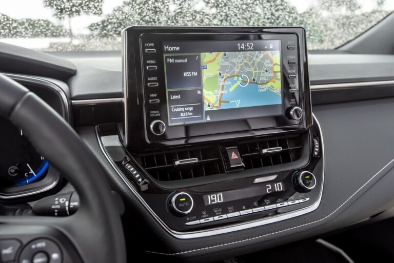 Kluczowym elementem poczucia przestronności wnętrza Corolli jest nowy projekt deski rozdzielczej, która jest o 24 mm cieńsza. Powstała redukcja wysokości górnej części panelu zmniejsza postrzeganą masę samego panelu i poprawia widoczność z przodu, jednocześnie umożliwiając obniżenie punktu biodrowego przednich siedzeń, co obniża środek ciężkości pojazdu i zapewnia bardziej angażującą pozycję za kierownicą.