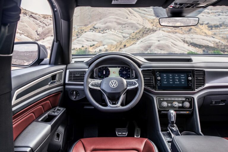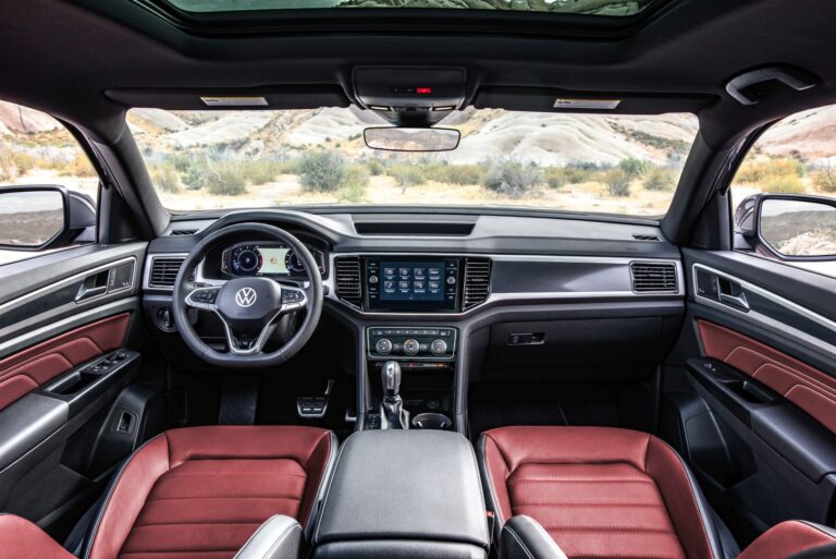 Wewnątrz, Cross Sport otrzymuje ulepszenia w porównaniu do istniejącego modelu Atlas. Jest nowa kierownica, z bardziej intuicyjnymi kontrolerami, dostępne akcenty przeszycia na wkładkach drzwi i siedzeniach oraz nowe funkcje technologiczne, w tym opcjonalne bezprzewodowe ładowanie telefonu. Dostępne luksusowe funkcje obejmują podgrzewane tylne siedzenia i kierownicę, a także wentylowane siedzenia z przodu, tylne osłony przeciwsłoneczne oraz system audio Fender® Premium z 12 głośnikami. Konfigurowany wyświetlacz instrumentów Volkswagen Digital Cockpit dostępny jest w wersji SEL oraz SEL Premium. Oprócz oferowania ogromnej ilości miejsca na bagaż, Atlas ma imponujące 40.4 cala przestrzeni na nogi dla pasażerów tylnych.