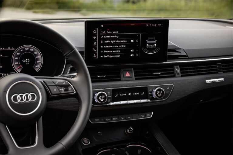 Dzięki nowemu systemowi MMI, mocno połączone Audi A4 oferuje doświadczenie użytkownika podobne do nowoczesnego smartfona. Wyświetlacz dotykowy MMI z akustycznym sprzężeniem zwrotnym zastępuje funkcje poprzedniego sterowania pokrętłem/przyciskami na konsoli centralnej. Wyświetlacz TFT o wysokiej rozdzielczości ma 10,1 cala. Jego grafika jest celowo prosta i minimalistyczna; struktura menu z ciasnymi hierarchiami jest dostosowana do oczekiwań użytkowników i ułatwia obsługę. Wyszukiwanie MMI opiera się na wprowadzaniu tekstu i szybko zwraca wyniki. Naturalna kontrola głosowa, kolejna funkcja nowego systemu, rozumie wiele zwrotów używanych w codziennej mowie.