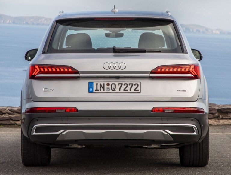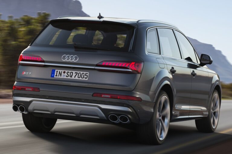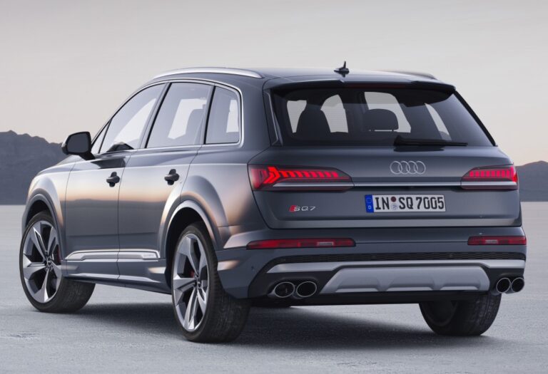 Na zewnątrz SQ7 TDI można odróżnić od innych modeli w gamie Q7 dzięki specjalnemu wyglądowi przodu. Dwa ogromne wloty powietrza znajdują się po obu stronach ośmiokątnej czarnej kratki z sześcioma pionowymi chromowanymi paskami. Z tyłu widać cztery owalne końcówki wydechu pod zderzakiem.