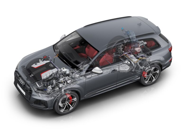 Zainstalowanie silnika V8 turbodiesla w SUVie to nie jest najdziwniejszy pomysł. Jednak gdy wszyscy zmniejszają swoje silniki, Audi wprowadza ogromny, ciężarowy, 4.0-litrowy silnik TDI. A żeby mieć pewność, że zrobią wrażenie na otoczeniu, zamontowali skomplikowany system zasilania z dwoma turbosprężarkami i jednym elektrycznym kompresorem. Moc wynosi 435 KM, a moment obrotowy osiąga również poziom typowy dla ciężarówek, wynosząc 900 Nm (663.8 lb-ft). Dzięki 8-biegowej automatycznej skrzyni biegów z konwerterem momentu, duży SUV ważący 2395 kg (5280 lbs) przyspiesza z miejsca do 100 km/h (62 mph) w 4.8 sekundy. Prędkość maksymalna jest ograniczona do 250 km/h (155 mph).