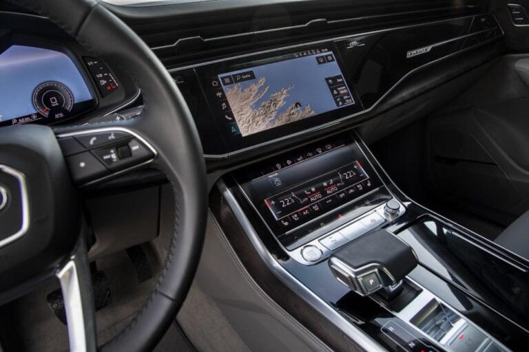 MMI Navigation Plus, które obejmuje sterowanie dotykowe, zapewnia najwyższej klasy łączność w standardzie. Oferuje LTE Advanced, hotspot Wi-Fi, naturalne sterowanie głosowe oraz rozszerzony pakiet Audi connect. Zawiera informacje o ruchu w czasie rzeczywistym, nawigację z Google Earth, hybrydowe radio oraz zintegrowaną w systemie operacyjnym MMI usługę głosową Amazon Alexa. Nową funkcjonalnością jest także usługa informacji o sygnale świetlnym. Łączy ona pojazd z centralnym komputerem kontrolującym sygnalizację świetlną i dostarcza kierowcy informacje w w pełni cyfrowym zestawie wskaźników oraz opcjonalnym wyświetlaczu HUD. Usługa ta przyczynia się do efektywnego stylu jazdy i ułatwia płynność ruchu. Wszystkie wyświetlacze są prezentowane z wyświetlaczem specyficznym dla S w wirtualnym kokpicie Audi. Dodatkowo dostępny jest widok wydajności, który umieszcza szczególnie sportowy obrotomierz na środku.