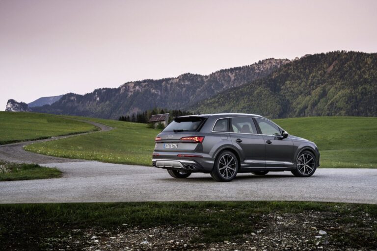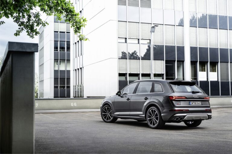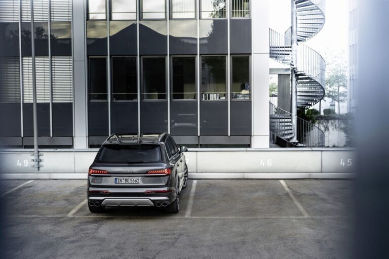 Tylne koła skręcają o maksymalnie 5 stopni w przeciwnym kierunku przy niskich prędkościach, co zwiększa zwinność. Na autostradzie te koła skręcają nieco w tym samym kierunku, co zwiększa stabilność. Dodatkowo, opcjonalny zaawansowany pakiet zawieszenia obejmuje elektromagnetyczną aktywną stabilizację przechyłów. Redukuje to wibracje masy sprężonej podczas jazdy na prostych, nierównych drogach oraz optymalizuje kompensację przechyłu, co zmniejsza kąt przechyłu przy sportowym stylu jazdy. Sportowy dyferencjał, który pozwala na jeszcze bardziej dynamiczne prowadzenie, jest trzecim zaawansowanym systemem na pokładzie. W szybkich zakrętach aktywnie rozdziela moc między tylnymi kołami. Dzięki temu Audi SQ7 TDI dosłownie wciąga w zakręt podczas skręcania lub przyspieszania, eliminując wszelkie oznaki podsterowności. W przypadku nadmiernej nadsterowności sportowy dyferencjał stabilizuje duży SUV, przenosząc moment obrotowy na koło po wewnętrznej stronie zakrętu.