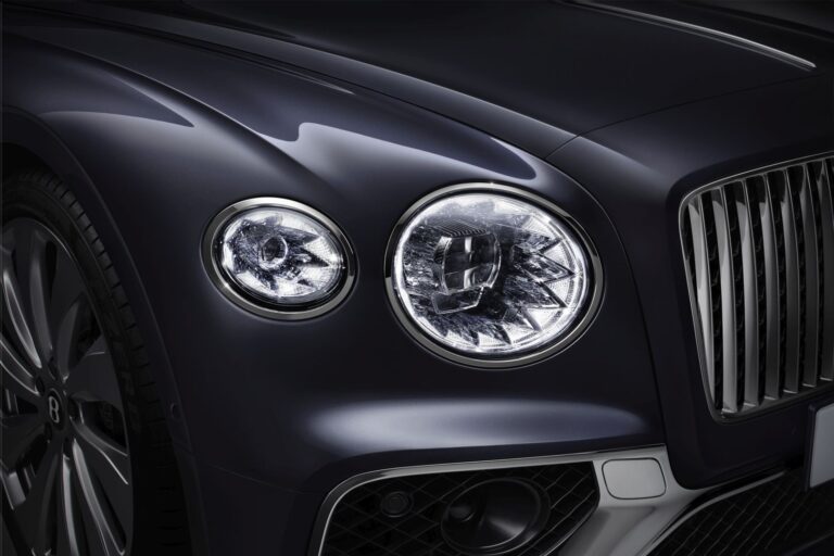 Reflektory LED z matrycą są standardem w Flying Spur, z unikalnymi detalami w kształcie ciętego kryształu. Za elementem cięcia dodano chromowaną osłonę, dzięki czemu świecą, nawet gdy nie są włączone. Z tyłu lampy w kształcie litery 'B’ nawiązują do diamentowego wzoru wentylacji wnętrza. Standardowo oferowane są nowe, 21-calowe koła, a także opcja dwóch unikalnych, 22-calowych specyfikacji Mulliner.