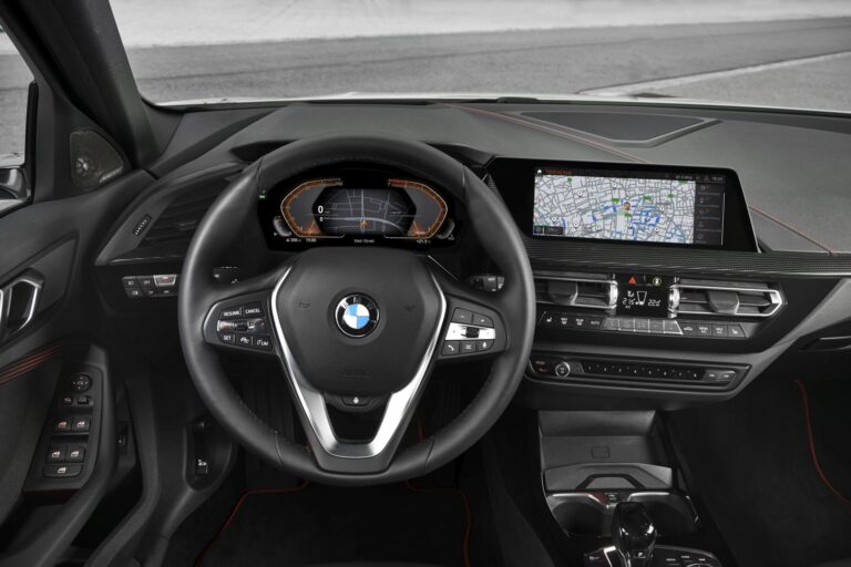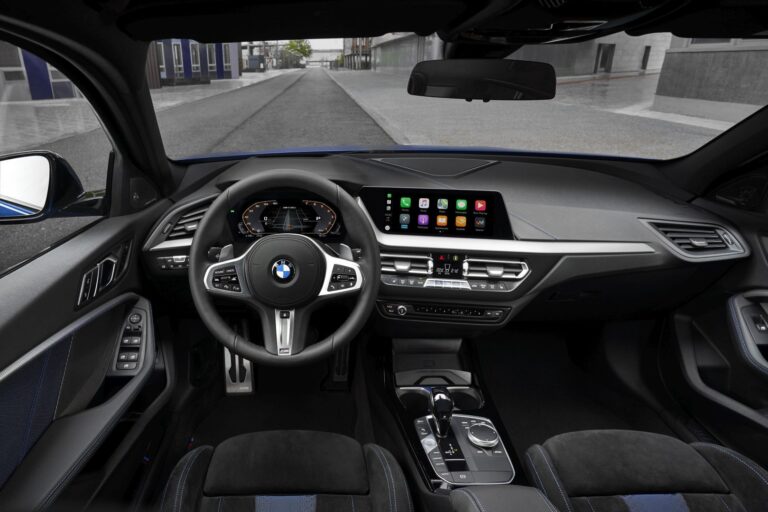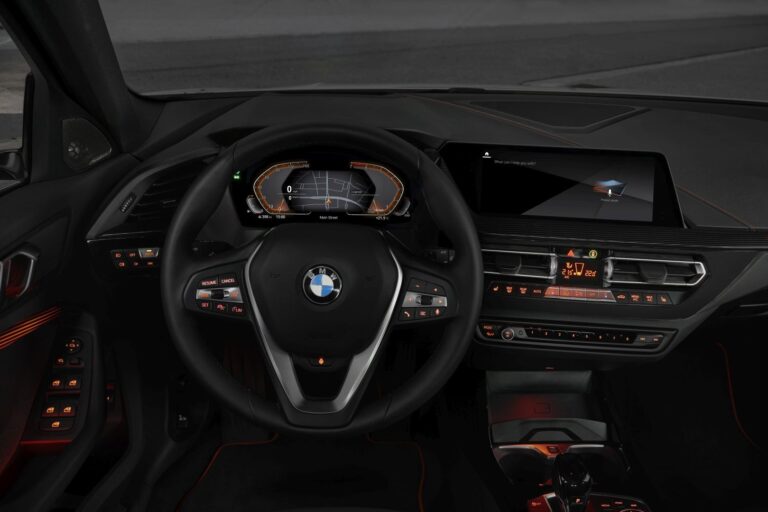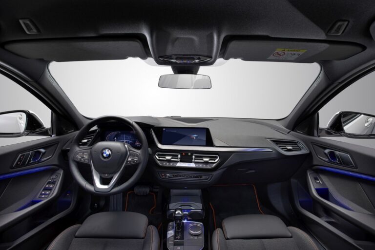 Wnętrze całkowicie nowego BMW serii 1 łączy większą przestrzeń rzeczywistą i ulepszony efekt przestronności z wysokiej jakości materiałami, rygorystycznie skupionymi na kierowcy kontrolkami oraz innowacyjnymi detalami, takimi jak podświetlane listwy wykończeniowe dostępne po raz pierwszy w BMW. Nowoczesne i jasno ustrukturyzowane wnętrze tworzy wrażenie dynamizmu i jakości podkreślonego grą różnych efektów fakturowych i elementów tekstur za kierownicą, na desce rozdzielczej i drzwiach. Grupy kontrolne są zgrupowane, co umożliwia łatwą obsługę, a komfort poprawia praktyczna przestrzeń do przechowywania. Dostęp do dostępnej opcji infotainment oferowanej przez nowy system operacyjny BMW 7.0 – opcjonalnie z kontrolą gestów – odbywa się poprzez dużą grupę wyświetlaczy, których dwa duże ekrany są dostępne z przekątną do 10,25 cala (z BMW Live Cockpit Professional).