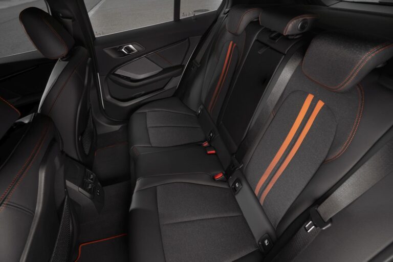 Model Sport Line obejmuje sportowe siedzenia z tapicerką materiałową/Sensatec i szarymi akcentami, podczas gdy opcjonalnie dostępne są pomarańczowe akcenty. Sportowa kierownica w samochodach linii Sport (także uwzględniona w modelu Luxury Line) ma dekoracyjny aluminium-look insert. Standardowe fotele lub opcjonalne sportowe fotele w tym wariancie wyposażenia są tapicerowane skórą Dakota. Model M Sport i standardowa specyfikacja BMW M135i xDrive obejmują sportową kierownicę M i sportowe fotele Trigon/Sensatec w kolorze czarnym. Ten wariant tapicerki wzbogacony jest o specjalne paski BMW M i kontrastowe niebieskie przeszycia. Dla sportowych siedzeń skóra Dakota dostępna jest w kolorze czarnym, czarnym z niebieskimi akcentami oraz Magma Red z szarymi akcentami. Klienci BMW serii 1 mogą teraz zamówić model M Sport i BMW M135i xDrive z sportowymi siedzeniami M, które mają integralny zagłówek i przedłużany podłokietnik. Są one także dostępne z tapicerką w tkaninie Trigon i Alcantara, a także skórą Dakota w czarnym i Magma Red.