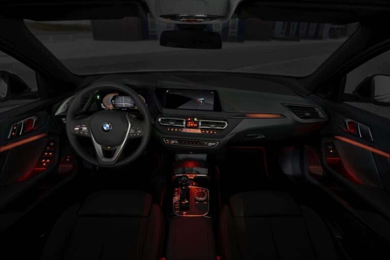 BMW serii 1 rzuca nowe światło na listwy wykończeniowe deski rozdzielczej i tapicerki drzwi, które standardowo wykończone są w matowym kolorze Quartz Silver i Pearl-effect Chrome. Jako opcję klienci mogą wybierać spośród trzech innych wysokiej jakości wzorów powierzchni wykończeniowych – jeden z nich jest ekskluzywny dla modelu M Sport i BMW M135i xDrive. Dzięki swojemu przekonującemu przezroczystemu charakterowi tworzą one wyraźną i atrakcyjną atmosferę. Kierowca może wybrać spośród sześciu różnych kolorów dla efektu oświetlenia. Listwy wykończeniowe zachowują swój normalny wygląd w świetle dziennym, ale w ciemności pełnią rolę dekoracyjnych elementów oświetleniowych z efektem kształtowania przestrzeni. Oprócz wyboru zaangażowanych kolorów, kierowca może dostosować jasność oświetlenia otoczenia według własnych upodobań. Oświetlenie uruchamia się po odblokowaniu pojazdu lub po wybraniu statusu „Żywy”. Żądany kolor i poziom jasności są przechowywane w spersonalizowanym kluczu.