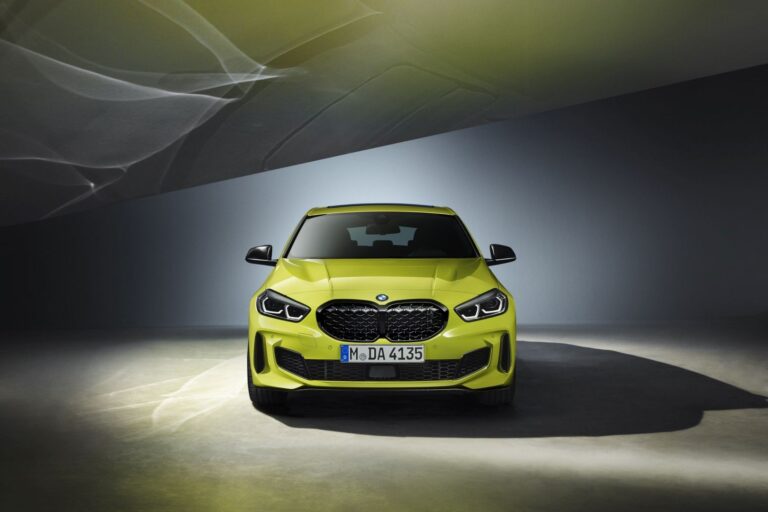 Z przodu BMW serii 1 od razu przyciąga uwagę nową twarzą i reinterpretacją ikonicznych elementów stylu BMW. Charakterystyczna osłona chłodnicy BMW jest większa, ma wyraźniejszą obecność, a po raz pierwszy w tej gamie modeli nerki łączą się w środku. Przyjmując ten wygląd, nowe BMW serii 1 podąża za trendem wyznaczonym przez większe sedany BMW. Sportowe, najwyższe w gamie BMW M135i xDrive wyróżnia charakterystyczna osłona chłodnicy, której wyrazisty design z siatki zastępuje klasyczne poprzeczki. Ten trójwymiarowy element inspirowany jest samochodami wyścigowymi i nadaje przodowi dodatkową głębię i staturę. Inną cechą wyróżniającą M135i xDrive jest dodatkowy element zamontowany w każdym z przykuwających uwagę zewnętrznych wlotów powietrza. Kształt i rozmiar wlotów podkreślają sportowy charakter nawet w podstawowej wersji nowej serii 1.