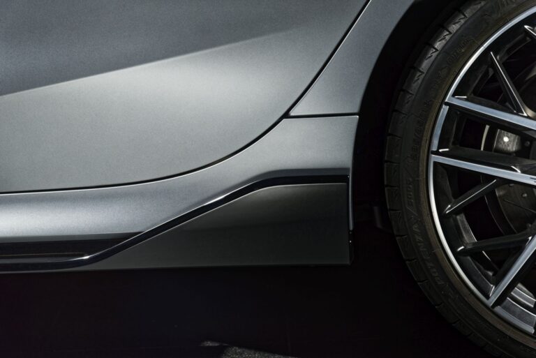 Czarne elementy wykończenia w przednim zderzaku modelu Sport Line mają wizualny efekt powiększenia wlotów powietrza, które – podobnie jak poprzeczki osłony chłodnicy BMW i nakładki na lusterka zewnętrzne – wykończone są wysokopołyskowym czarnym kolorem. To podkreśla szerokość samochodu. Otoczka osłony chłodnicy BMW jest w połyskującym chromie, natomiast otoczki grafiki okiennej mają wykończenie BMW Individual w wysokopołyskowej wersji Shadow Line. Tylny zderzak ma czarną powierzchnię.