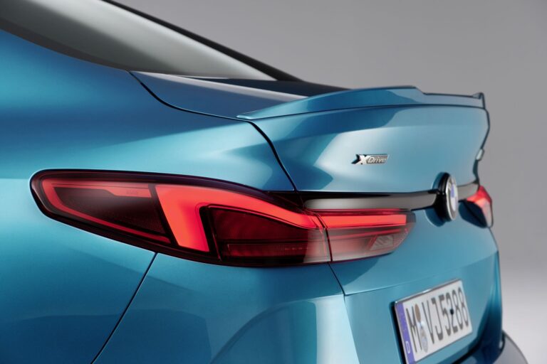 BMW po raz pierwszy przenosi swoją udaną koncepcję Gran Coupe z modeli BMW 6-Series, BMW 4-Series i BMW 8-Series do klasy premium kompaktów. Nowe BMW 2-Series Gran Coupe płynnie przywraca elegancki, premium estetyczny styl promowany przez swoich większych braci, dodając ekskluzywne detale, takie jak konturowane żeberka chłodnicy z wyraźnym wcięciem, siatkowy grill dla flagowego BMW M235i xDrive oraz, co najbardziej uderzające, nowoczesny design tylnych świateł, które sięgają daleko w środek tylnej części. Przechodzą one w błyszczący czarny pas, który obejmuje centralnie umieszczony emblemat BMW. Ta kombinacja tylnych świateł i łączącego elementu tworzy poziome wrażenie i podkreśla szerokość tyłu samochodu.