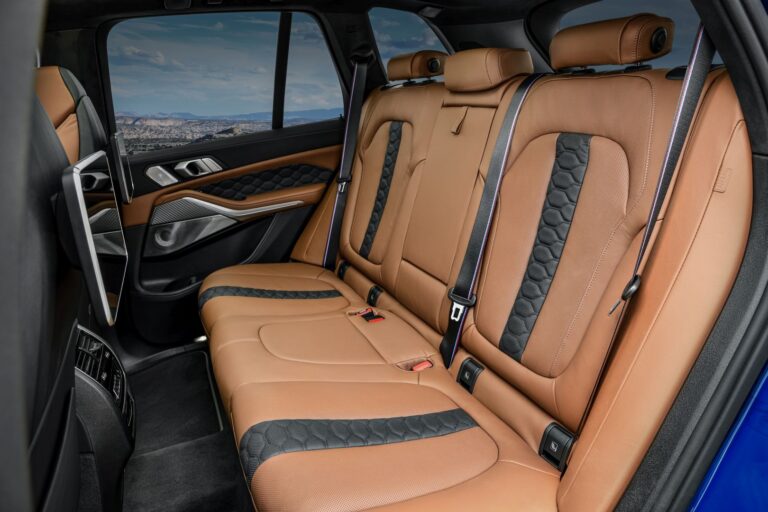Kabina nowych modeli BMW X6 M, BMW X6 M Competition oraz BMW X5 M Competition jest wyposażona w unoszącą się centralną konsolę oraz podłokietniki boczne. Wszystkie modele standardowo wyposażone są w podświetlane płyty progowe (ze specjalnym wykończeniem i oznaczeniem w wersjach Competition), listwy wykończeniowe wnętrza w Aluminium Crossline (węgiel w modelach Competition) oraz fotele wielofunkcyjne M z wbudowanymi zagłówkami z podświetlonym oznaczeniem modelu. Lista opcji obejmuje zarówno listwy wykończeniowe z włókna węglowego, jak i wnętrza w stylu BMW Individual. Wnętrze modeli Competition ma również antracytowy sufit BMW Individual w Alcantarze. Dwukolorowe wykończenie ze skóry pełnej o wysokiej jakości w kolorze Merino z pikowaniem w stylu M jest również stosowane w panelach drzwi. Ta opcja wykończenia obejmuje również dolną część deski rozdzielczej, oparcia przednich siedzeń, pokrywy drzwi oraz kieszenie drzwi, również pokryte skórą, a także zawiera sufit BMW Individual w Alcantarze. W pełne skórzane wykończenie w kolorze Midrand Beige/Czarnym z aplikacjami Alcantara dostępne jest wyłącznie w modelach Competition. Trzy fotele z tyłu oferują swoim pasażerom dużą przestronność. W nowych modelach BMW X6 M i BMW X6 M Competition wyraźnie stylizowane są jako indywidualne siedzenia z wbudowanymi zagłówkami, co jeszcze bardziej wzmacnia sportowy charakter tylnej części kabiny.