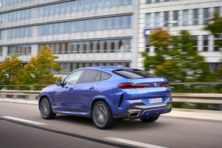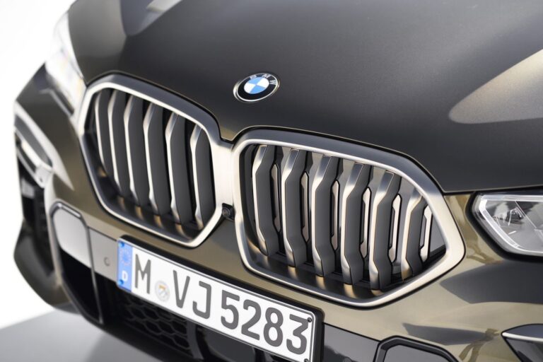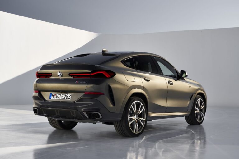 Wygląd zewnętrzny nowego BMW X6 M50i kształtują aerodynamicznie zoptymalizowane elementy nadwozia, w tym przedni zderzak z dużymi wlotami powietrza oraz tylny zderzak z wlotem w kolorze nadwozia. Maskownica chłodnicy BMW, poziome elementy wykończeniowe w wlotach powietrza oraz osłony zewnętrznych lusterków są pomalowane na kolor Cerium Grey, a oznaczenie modelu z tyłu oraz końcówki wydechu przyjmują ten sam kolor. Nowe BMW X6 M50i standardowo jest wyposażone w czarne sportowe fotele z tapicerką skórzaną Vernasca oraz skórzaną kierownicę M Sport. Oczywiście, podświetlana maskownica chłodnicy jest także dostępna jako opcja dla X6 M50i.
