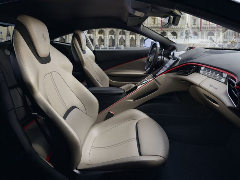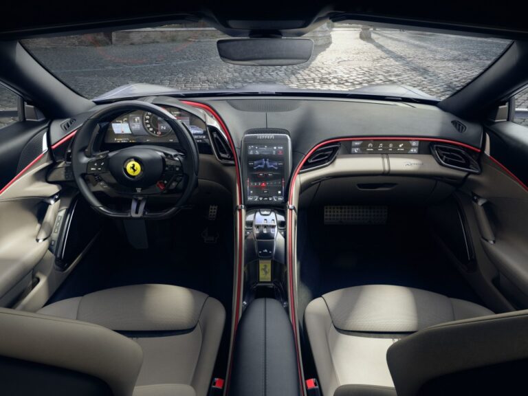Aby zapewnić najlepszą w swojej klasie wydajność, zachowując jednocześnie czystość stylistyczną swojej linii, inżynierowie Ferrari opracowali szereg nowoczesnych technologii, w tym mobilny tylny spojler zintegrowany z tylną szybą, który zachowuje formalną elegancję pojazdu po schowaniu i gwarantuje docisk niezbędny dla niezwykłych osiągów Ferrari Roma, automatycznie otwierając się przy dużych prędkościach.