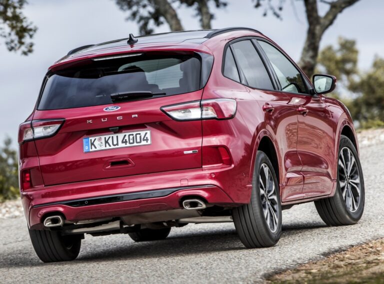 Efektowny styl Ford Kuga ST-Line inspirowany modelami Ford Performance obejmuje zderzaki i progi w kolorze nadwozia; oraz kratkę, przednią osłonę, tylny dyfuzor i belki dachowe wykończone na czarno. Duży tylni spojler, standardowe 18-calowe lub opcjonalne 19-calowe felgi aluminiowe oraz podwójne rury wydechowe podkreślają sportowy charakter. Wewnątrz ciemna podsufitka, ekskluzywne wzory siedzeń ST-Line z kontrastowym czerwonym przeszyciem, aluminiowe pedały, kierownica z płaskim dnem oraz maty i osłony podłogowe ST-Line odzwierciedlają sportowy charakter.